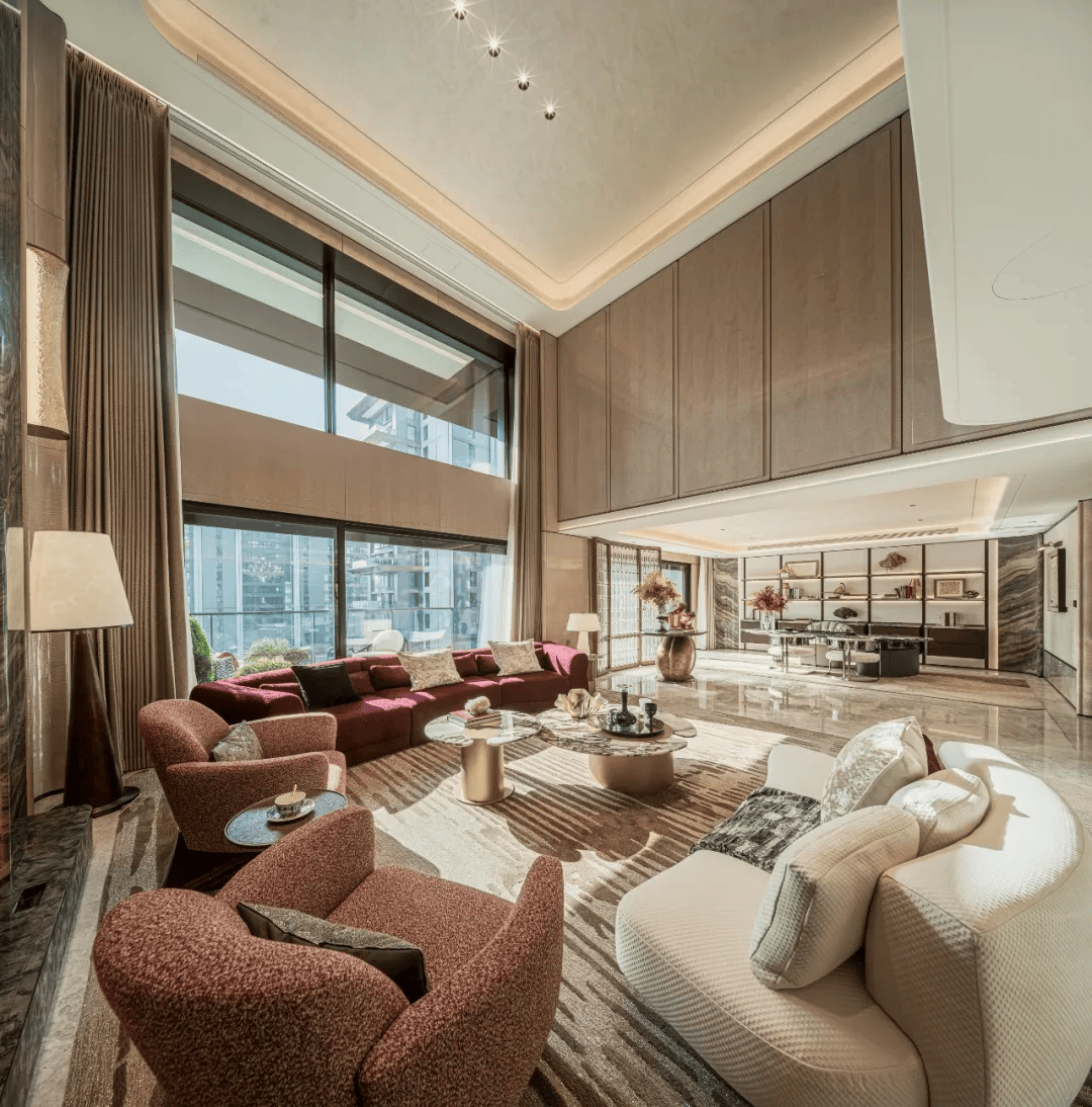 中海二十二墅,上下两层的立体结构,既具有大平层的广大视野,又具备别墅的私密分层,创造「墅居+平层」双重体验,精准回应了塔尖改良独立私密、三代同堂等复合型的寓居需求。