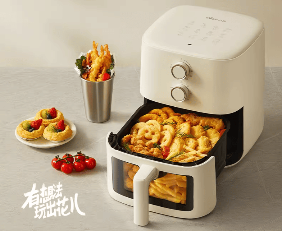 可视化策画的普及光鲜擢升了消费者的操纵体验。消费者或许及时窥察食材的烹调形态,从而消重烹调让步的概率。蒸汽功效的参加则拓展了气氛炸锅的功效周围,使其从简单的“炸”功效,升级为集蒸、烤、炸、烘焙等众种功效于一体的归纳性烹调核心。目前,美的、九阳、小熊等主流品牌推出的旗舰产物,纷纷将“蒸汽嫩炸”或“蒸烤炸炖”动作中心卖点,精准契合了现代厨房探索“空间集约化”与“功效集成化”的消费趋向。